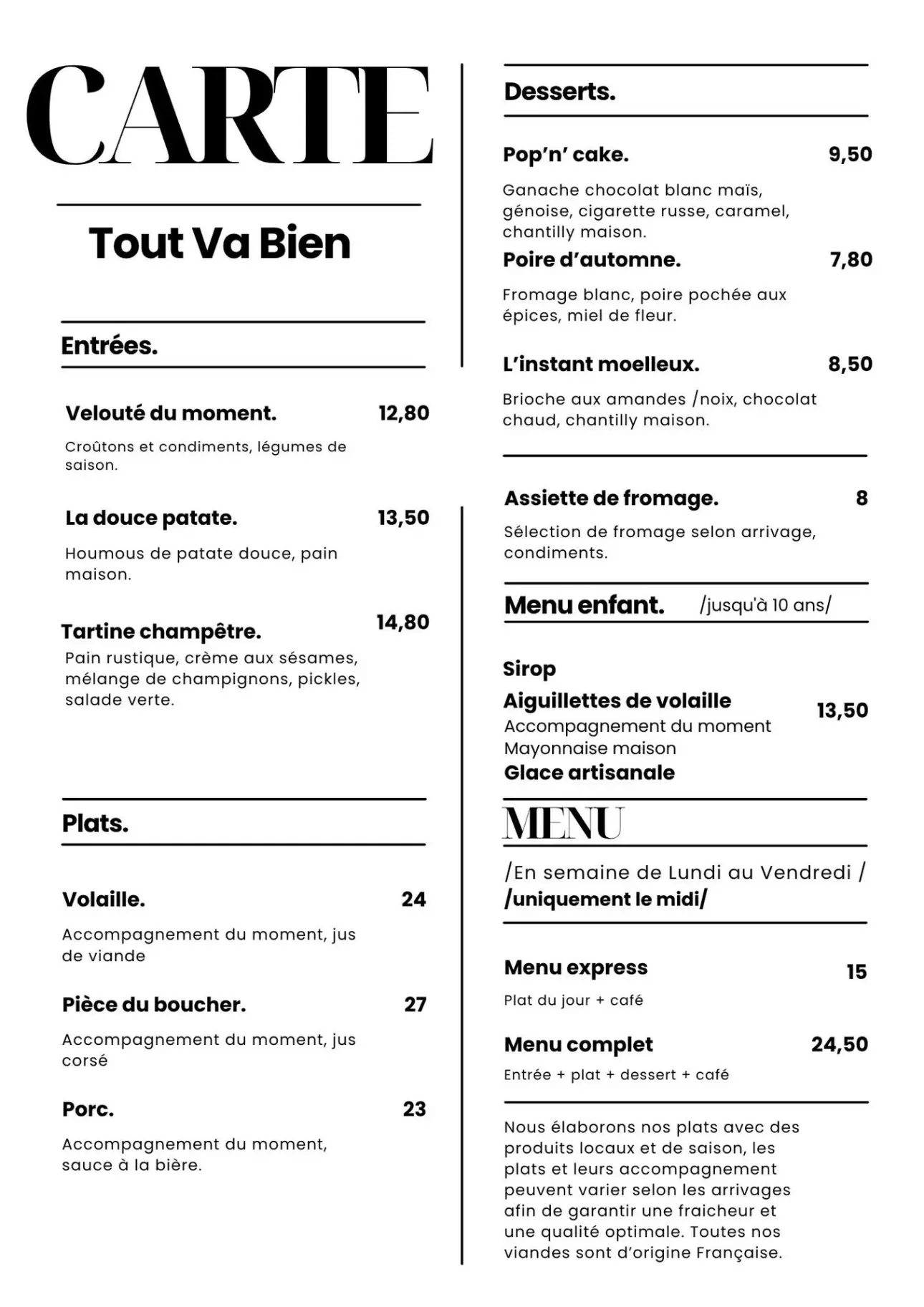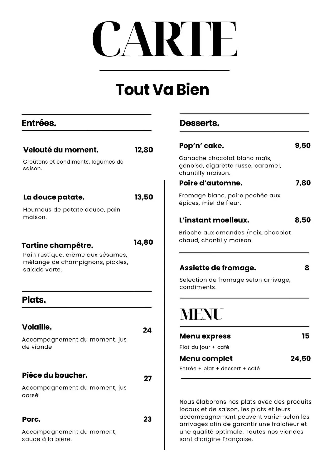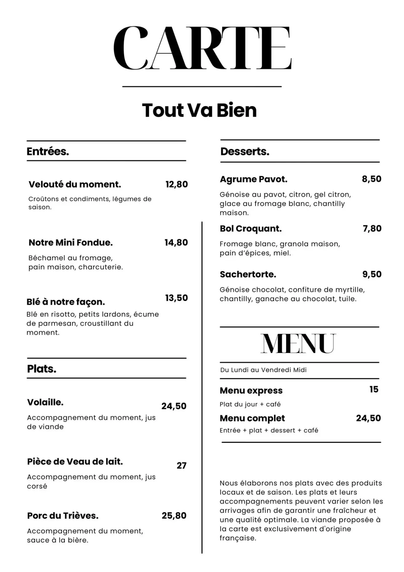 Carte mise à jour régulièrement – Consultez nos suggestions du moment.